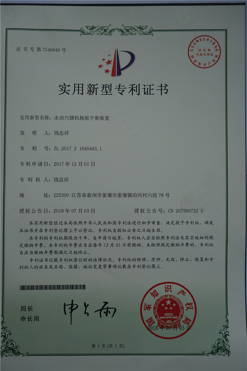 泰州市金茂田農(nóng)機(jī)制造有限公司,位于風(fēng)景優(yōu)美的江蘇省泰州市姜堰區(qū)。公司成立于2005年,經(jīng)過(guò)十幾年的發(fā)展公司已成為江蘇省質(zhì)量誠(chéng)信3A級(jí)品牌企業(yè)。泰州市金茂田農(nóng)機(jī)制造有限公司目前擁有標(biāo)準(zhǔn)化廠房約1萬(wàn)平方米,擁有多臺(tái)自動(dòng)化焊接設(shè)備及自主研發(fā)專業(yè)配套數(shù)控機(jī)床、先進(jìn)的材料分析儀。并擁有專業(yè)技術(shù)研發(fā)團(tuán)隊(duì),技術(shù)人員30人,員工100人。金茂田公司創(chuàng)始人錢金茂老先生從1976年從事農(nóng)機(jī)研修工作一直到如今,在農(nóng)機(jī)領(lǐng)...
